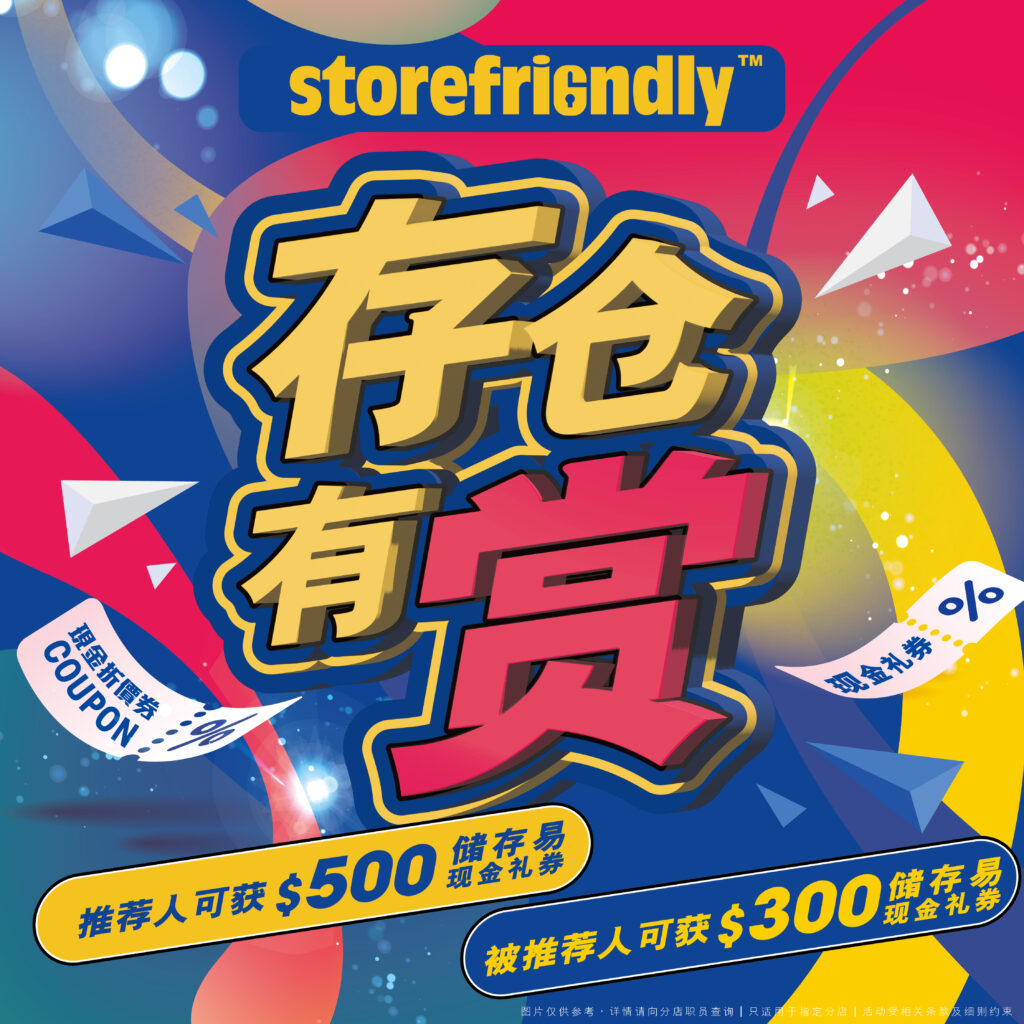 现有客户成功推荐亲友租用Storefriendly存仓服务,即可获得HK$500 Storefriendly现金礼券;被推荐人亦可获得HK$300礼券,人人有奖,齐齐开心!